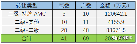 2019年二級(jí)投資機(jī)構(gòu)共出讓69戶(hù),出讓債權(quán)金額20億余元,其中二級(jí)-二級(jí)為主要轉(zhuǎn)讓類(lèi)型。