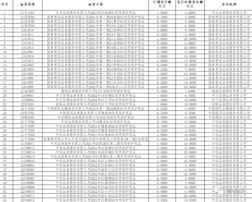 2019年,可以稱之為信用保護憑證元年,主要規(guī)定均于2019年制定。據(jù)不完全統(tǒng)計,目前有44只信用保護憑證產(chǎn)品,主要創(chuàng)設(shè)機構(gòu)為國君和中信,其中國君17只、中信19只。就具體產(chǎn)品來看,主要是為了解決主體和債項為AA+債券的質(zhì)押問題,進一步來說,就是解決這部分產(chǎn)品的流動性問題。