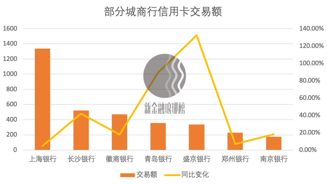 在新金融瑯琊榜統(tǒng)計(jì)的25家城商行中,披露了信用卡交易額的僅有7家。上海銀行遙遙領(lǐng)先,也是唯一一家全年信用卡交易額超過(guò)千億元的城商行。