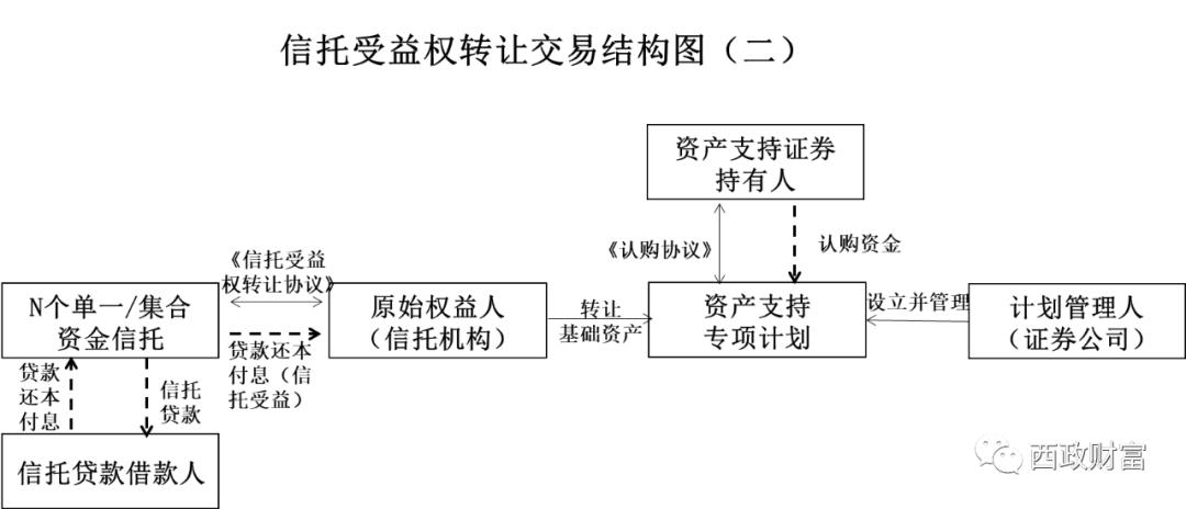 3.信托機構與專項資管計劃管理人簽署《信托受益權轉讓協議》,將信托受益權作為基礎資產轉讓給專項計劃并設立ABS;