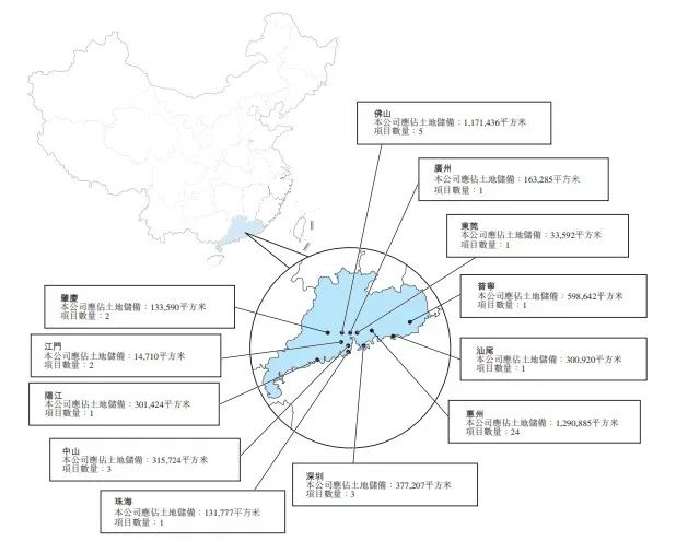 招股書介紹,主要在粵港澳大灣區(qū),截至8月末45個項目組合,覆蓋廣東省12個城市,其中4個項目通過一家聯(lián)營公司開發(fā)。
