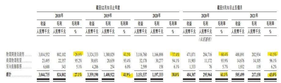 2018年、2019年、2020年,杠桿地產(chǎn)注意到,方直發(fā)展的毛利分別為8.25億元、14.09億元、11.97億元。2020年前5月、2021年同期,分別為2.96億元、2.17億元。