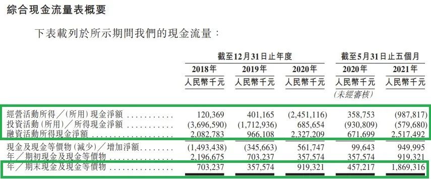 比如,招股書就說,2020年以及2021年前5個月,錄得負(fù)經(jīng)營現(xiàn)金流量。