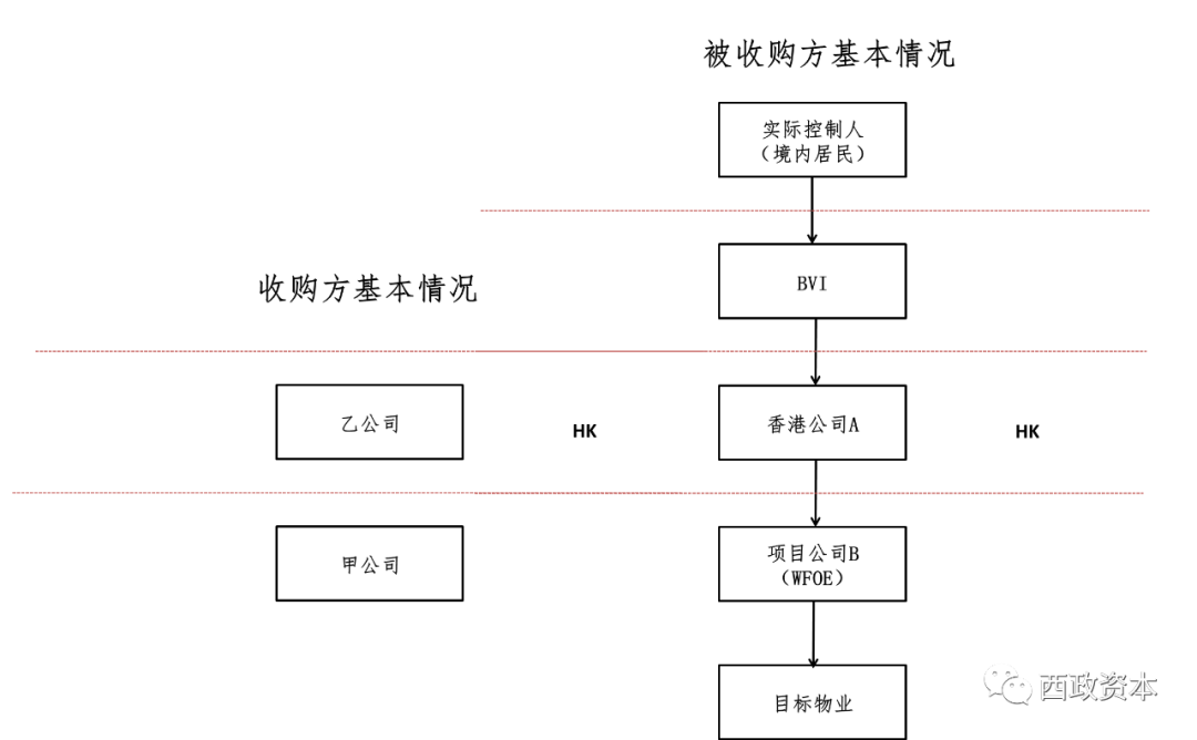 背景假設(shè):甲公司(內(nèi)資企業(yè))擬實現(xiàn)對項目公司B(外商投資企業(yè))名下資產(chǎn)控制之目的,甲公司有一香港關(guān)聯(lián)方乙公司。項目公司B為香港公司A的全資子公司,其最終實際控制人系境內(nèi)居民。