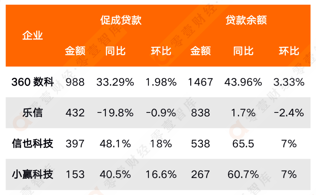 原標(biāo)題: 四家助貸平臺一季報對比:360數(shù)科促成貸款988億元,信也科技小企業(yè)貸款占比24.7%