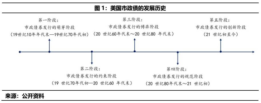 從歷史的脈絡來看,美國市政債的發展從19世紀初開始,歷經200年的時間,大概經歷了五個具體的階段: