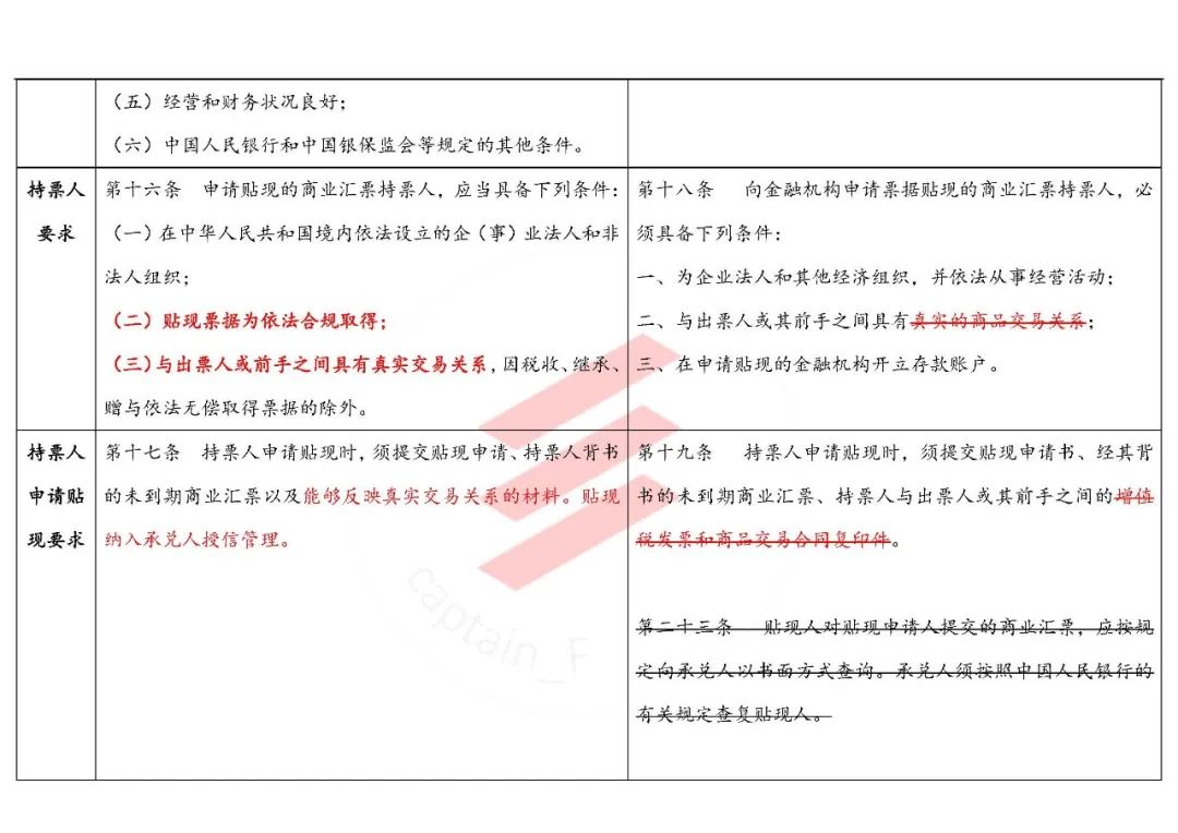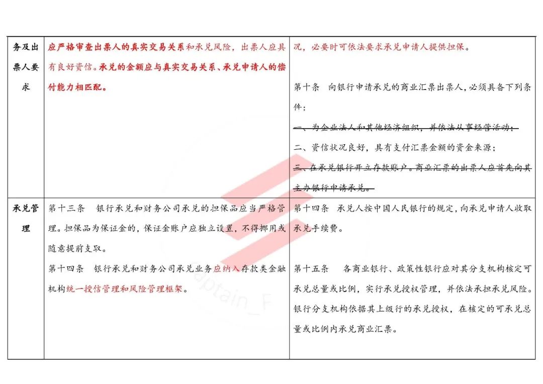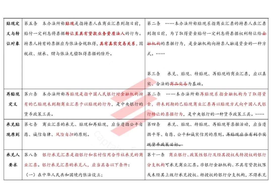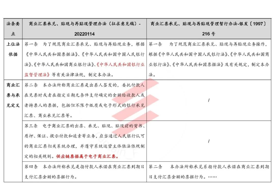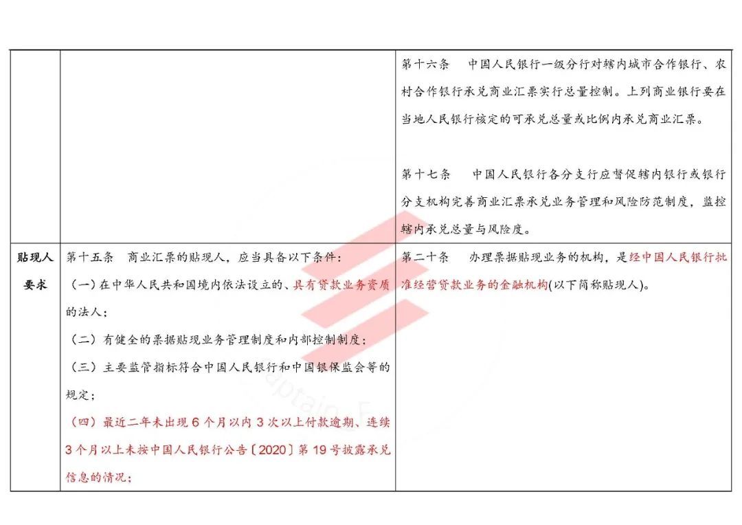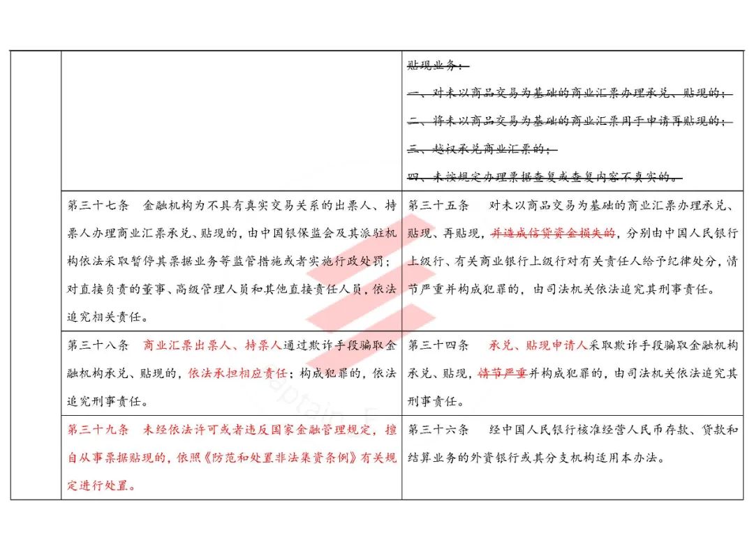 商業(yè)匯票承兌、貼現(xiàn)與再貼現(xiàn)管理辦法(征求意見稿)新舊對(duì)比