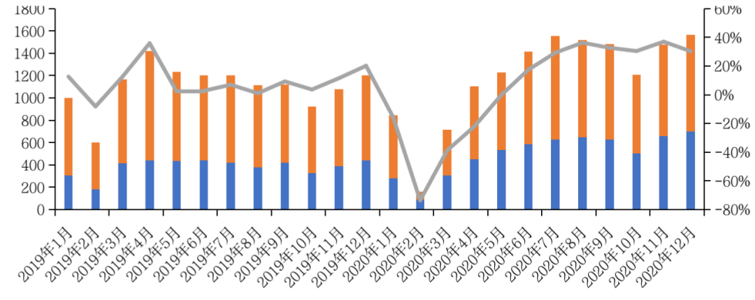 一線城市供應情況或將有所改善,有望保持增勢。目前來看,一線城市2020年整體土地成交規模可觀,全年成交量累計同比大幅增長31%,這部分貨量有望在明年下半年集中入市,從而形成有效供應。