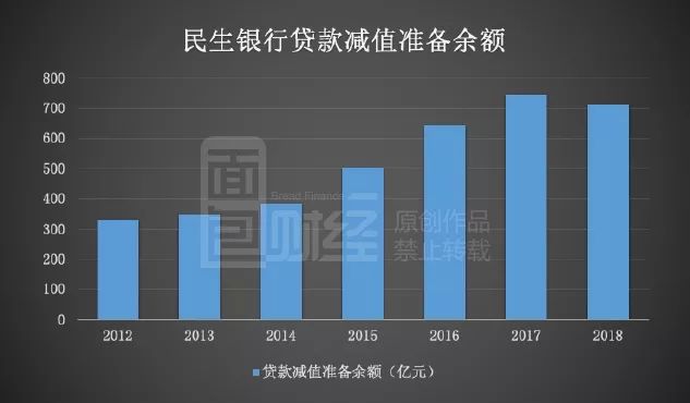 年報(bào)顯示,截至2018年底,民生銀行貸款減值準(zhǔn)備余額為712.16億元,較上年末下降了33.03億元。
