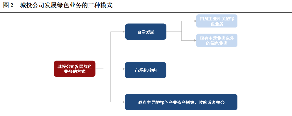總結(jié)來(lái)看,城投公司發(fā)展綠色業(yè)務(wù)有三種方式: