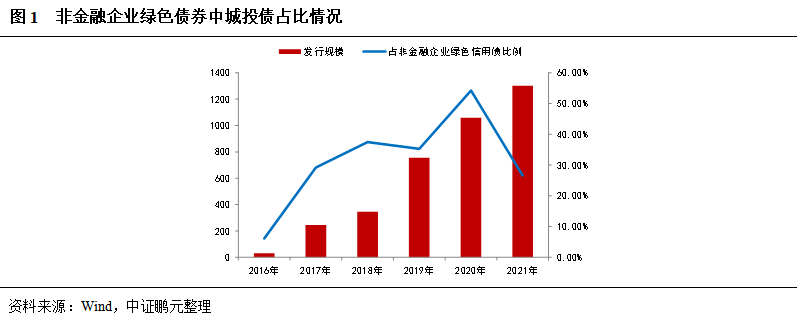 2014年隨著《國(guó)務(wù)院關(guān)于加強(qiáng)地方政府性債務(wù)管理的意見(jiàn)》(簡(jiǎn)稱43號(hào)文)的出臺(tái),城投公司融資職能被剝離,開(kāi)啟了市場(chǎng)化轉(zhuǎn)型之路。這其中,一些城投公司重視綠色業(yè)務(wù)的發(fā)展,積極參與到綠色金融中,發(fā)行綠色債券,甚至有一些城投公司著力于綠色發(fā)展轉(zhuǎn)型。2017年以來(lái),城投公司是非金融企業(yè)綠色債券的重要參與者,2020年,城投公司發(fā)行的綠色債券占非金融企業(yè)綠色債券的比例達(dá)到50%以上。