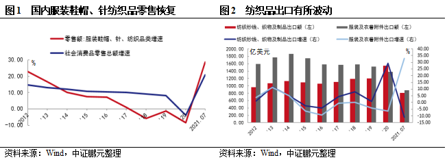 2021年以來國內(nèi)服裝鞋帽、針紡織品類商品消費(fèi)保持良好增長。2021年1-7月服裝鞋帽、針紡織品類商品銷售額7,672.50億元,同比增長28.76%,高于社會消費(fèi)品零售總額增速8.06個(gè)百分點(diǎn)。同時(shí)消費(fèi)市場呈現(xiàn)出網(wǎng)絡(luò)渠道銷售活躍、消費(fèi)者彰顯個(gè)性需求顯著、直播電商帶來更好消費(fèi)體驗(yàn)等特點(diǎn)。