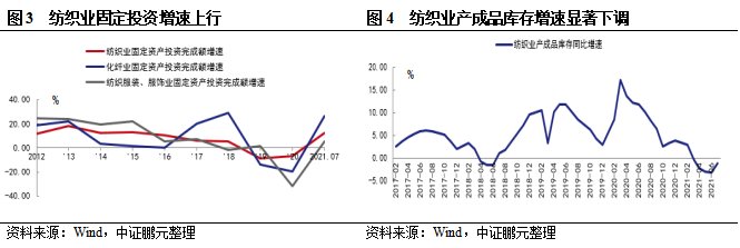 在國內(nèi)外市場需求復(fù)蘇支撐下,行業(yè)投資恢復(fù),產(chǎn)能利用率穩(wěn)步向好,存貨規(guī)模有所下降,行業(yè)景氣度提升。2021年上半年紡織業(yè)固定投資呈現(xiàn)增長,1-7月同比增長12.30%,恢復(fù)較為明顯。根據(jù)國家統(tǒng)計(jì)局?jǐn)?shù)據(jù),2021年上半年,紡織業(yè)產(chǎn)能利用率為79.7%,高于同期全國工業(yè)77.9%的水平,較2020年同期提高9.4個(gè)百分點(diǎn)。存貨方面,部分訂單向國內(nèi)轉(zhuǎn)移,同時(shí)國內(nèi)需求增長超預(yù)期,今年以來國內(nèi)紡織品產(chǎn)成品庫存規(guī)模處于近年來低位,截至2021年6月末,紡織業(yè)產(chǎn)成品存貨規(guī)模1,597億元,同比下降3.2%。