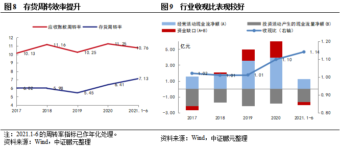 現(xiàn)金流方面,樣本企業(yè)整體收現(xiàn)情況仍較好,收現(xiàn)比持續(xù)上升;投資方面,2021年上半年樣本企業(yè)固定投資增長較多,呈現(xiàn)經(jīng)營現(xiàn)金流凈額未能完全覆蓋投資流出的情況。