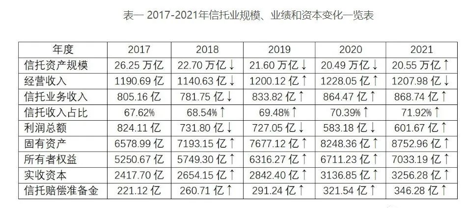 根據中國信托業協會2022年3月23日披露的數據,2021年末信托行業資產規模余額為20.55萬億元,這是2018年以來信托行業的資產規模首次回升!從表中數據可以看出,2018年、2018年和2020年,信托資產規模連續三年都是下降的。