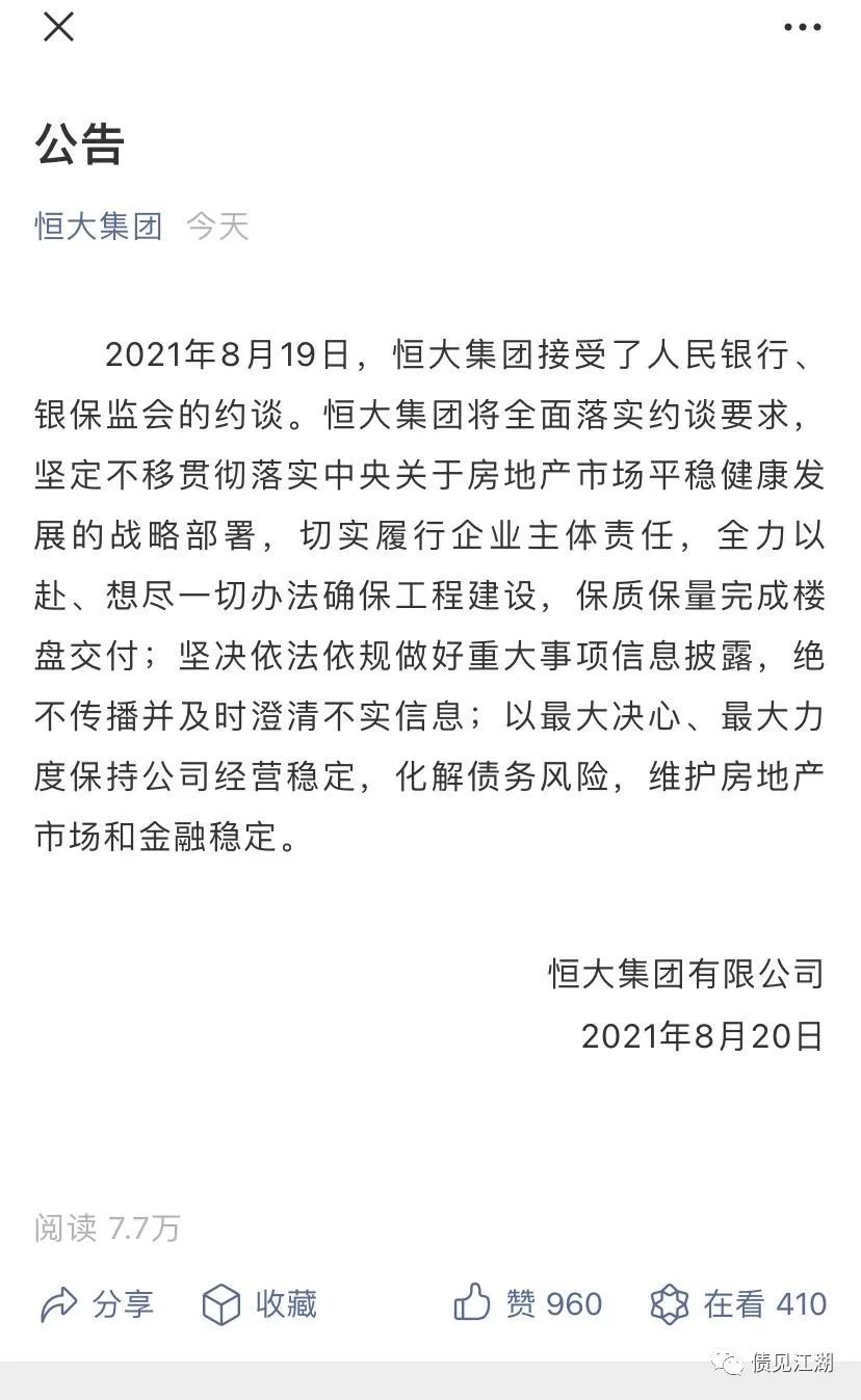 原標(biāo)題: 人民銀行、銀保監(jiān)會約談恒大集團,恒大集團今日回應(yīng)