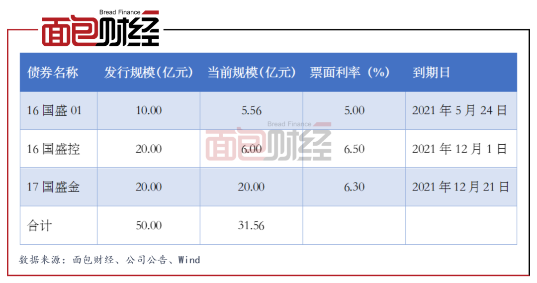 國盛金控的債券償付壓力較為嚴峻。2020年,受接管事項影響,評級機構(gòu)將國盛金控主體和債項評級從AA+下調(diào)至AA-,債券受托管理人將公司債券列入風(fēng)險類債券。報告期間,公司完成了“16國盛金”債券的本息兌付、“16國盛控”債券的付息以及“17國盛金”債券的付息。2021年,公司將面臨多項債券的本息兌付。