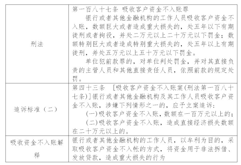 對于本罪中行為人吸收客戶資金不入賬,數額在一百萬元以上的,或吸收客戶資金不入賬,造成直接經濟損失數額在二十萬元以上的,應予立案追訴。
