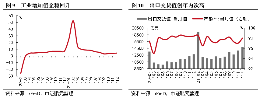 五,冬季保供穩(wěn)價政策持續(xù)顯效,12月工業(yè)生產繼續(xù)回暖,高技術制造業(yè)和出口繼續(xù)維持高增長。