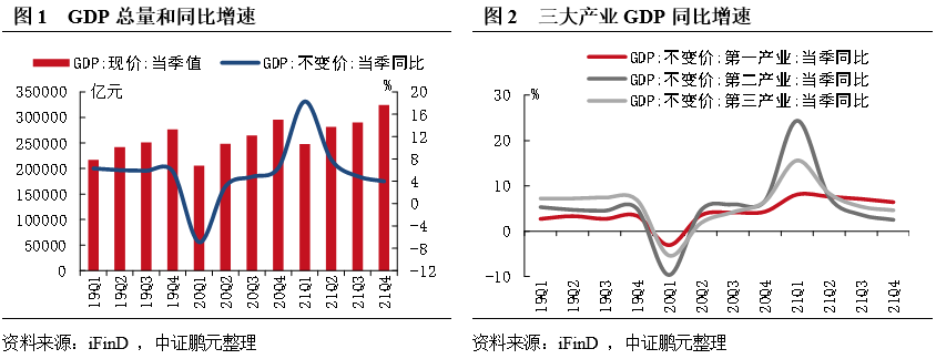 一,全年GDP同比增長8.1%,兩年平均增長5.1%,經濟總量達114萬億元,穩(wěn)居世界第二。三大產值全年同比增長7.1%、8.2%和8.2%;一、二、三、四季度GDP實際增長18.3%、7.9%、4.9%、4.0%。