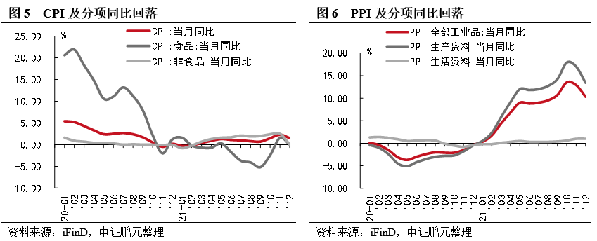 從PPI環(huán)比看,保供穩(wěn)價政策落實力度不斷加大,煤炭價格繼續(xù)回落,煤炭開采和洗選業(yè)價格下降8.3%,降幅擴大3.4個百分點;煤炭加工價格下降15.4%,降幅擴大7.0個百分點。冬季鋼材、水泥等建筑材料需求偏弱,價格有所下降,黑色金屬冶煉和壓延加工業(yè)價格下降4.4%,非金屬礦物制品業(yè)價格下降1.4%。國際原油、有色金屬價格走低,帶動國內相關行業(yè)價格下降。石油開采價格下降8.3%,精煉石油產品制造價格下降4.0%,有色金屬冶煉和壓延加工業(yè)價格下降1.4%。