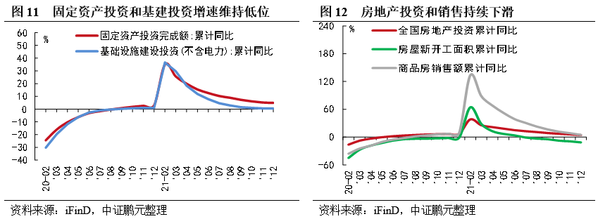 六、制造業(yè)投資持續(xù)改善,基建與房地產投資仍維持低位:1-12月,制造業(yè)投資增速13.5%,增長態(tài)勢良好。基礎設施投資比上年增長0.4%。兩年平均增長0.3%。房地產投資額、新開工面積和銷售額仍未出現(xiàn)明顯改善。