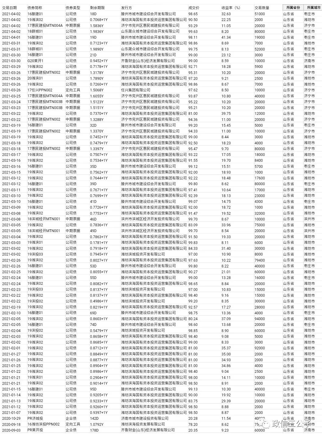 整理了一下過去半年內,到期日在2年以內的二級市場收益高于8%的江浙魯城投的成交信息,分享給大家。