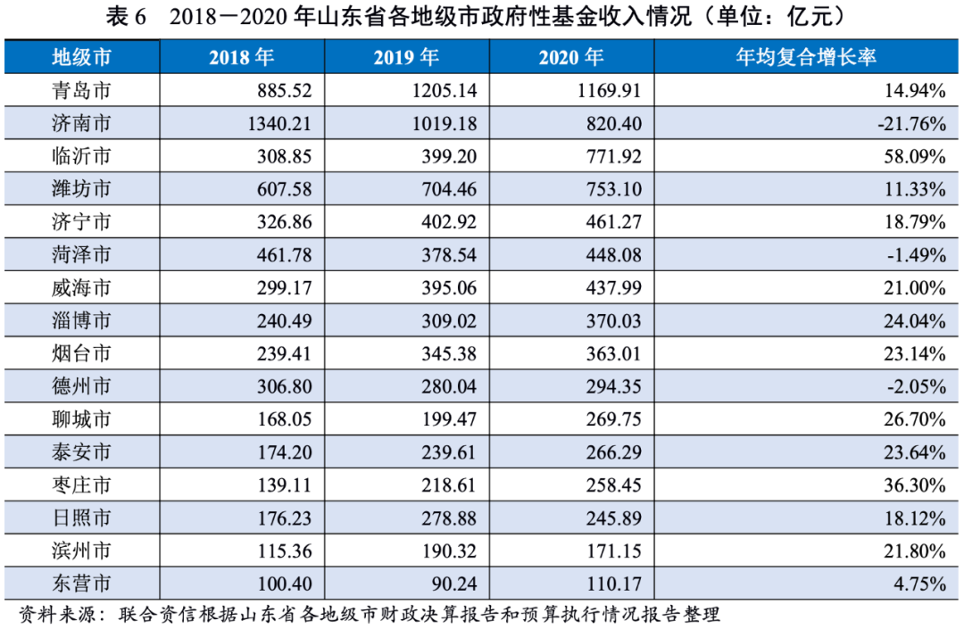 由于加大對改善民生以及經濟結構調整的支持力度,山東省政府債務余額持續增長,2020年末居全國第2位,距財政部下達的政府債務限額尚有一定的空間。