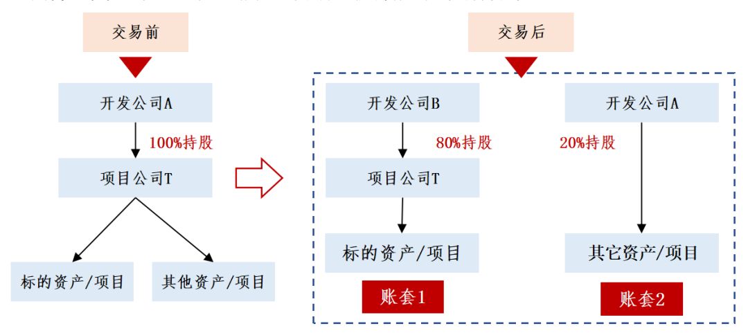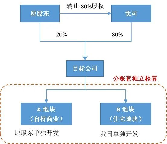 本次我們只講投拓實操中最常見到模式③,即是我方通過收購對方部分股權(quán),但雙方約定該部分股權(quán)對應(yīng)目標地塊100%的開發(fā)收益權(quán),開發(fā)過程中,采用分帳套的方式獨立核算、分別管理。而非目標地塊則仍由項目公司原股東繼續(xù)開發(fā)。