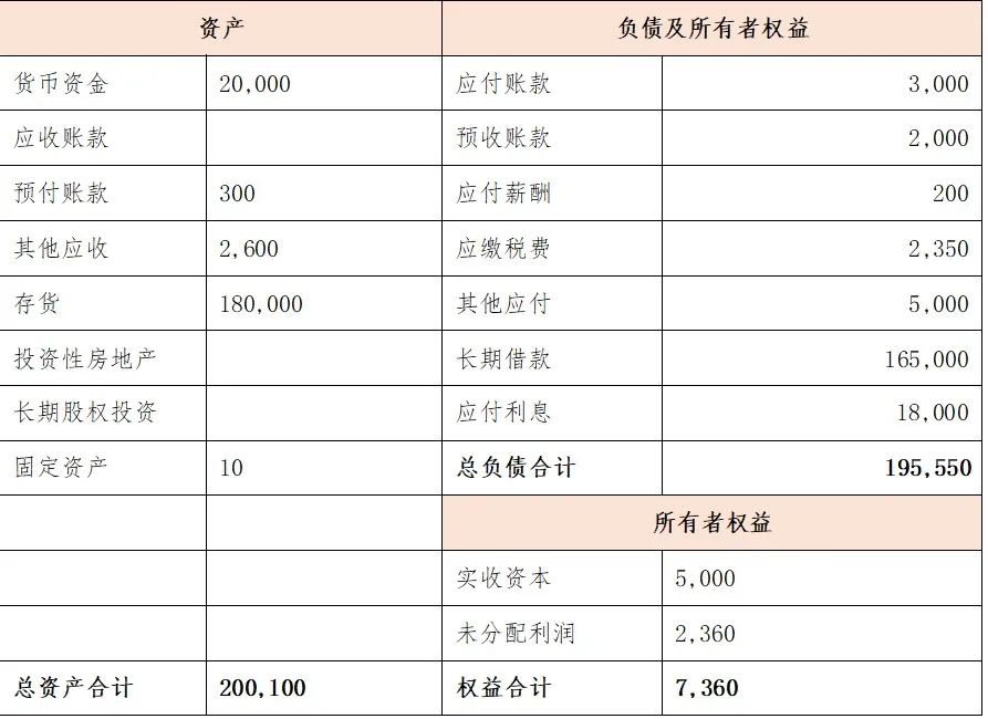 合作方提供的目標公司資產(chǎn)負債表如下: