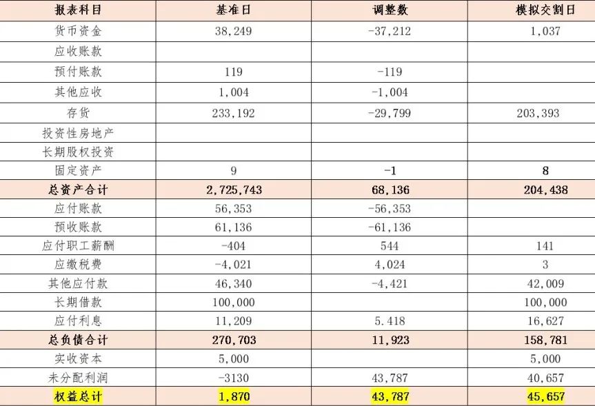 3)拆分以后的資產(chǎn)負債表,非目標資產(chǎn)部分的資產(chǎn),負債以及各項權(quán)益均歸屬于原合作方,與收購方無關(guān)。