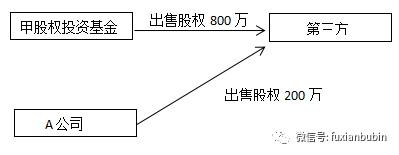 假設甲股權投資基金投資A公司,若此時甲股權投資基金占有的股份為20%,A公司的其他股東占有的股份為80%,此時若A公司擬出售1000萬股的股權給第三方,其交易結構為: