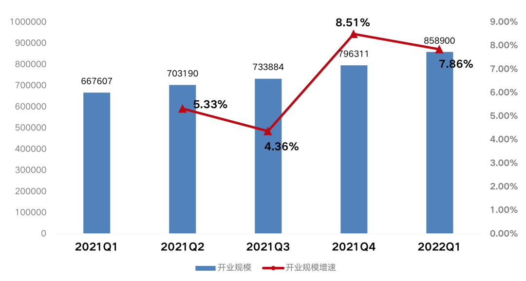 克而瑞租售數據顯示,2022年第一季度,TOP30住房租賃企業累計開業規模85.89萬間,同比增長28.86%,較去年四季度環比增長7.86%,但增速較去年四季度下跌了0.6個百分點。