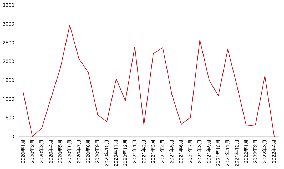 圖:2020.1-2022.4上海集中式公寓新增開業規模變化