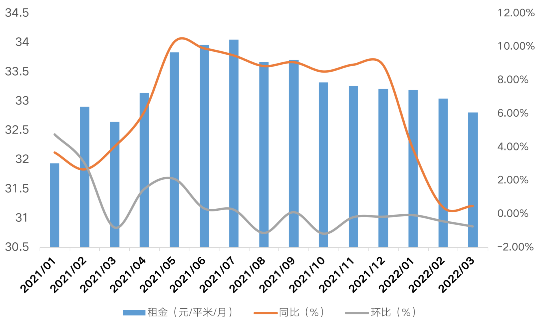 3-4月,由于部分城市疫情的突發,多城封閉管理,也在一定程度上限制了租金的增長。