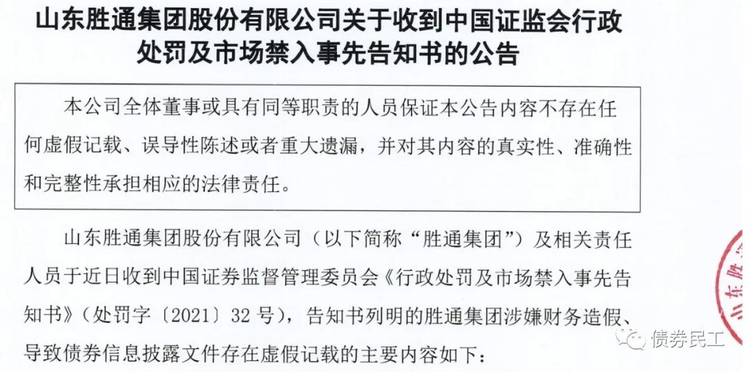 根據(jù)山東勝通集團(tuán)股份有限公司(以下簡(jiǎn)稱“山東勝通集團(tuán)”)于2021年5月14日披露的公告文件,中國(guó)證監(jiān)會(huì)已經(jīng)對(duì)公司下發(fā)行政處罰和市場(chǎng)禁入事先告知書(shū),主要原因是公司“涉嫌財(cái)務(wù)造假、導(dǎo)致債券信息披露文件存在虛假記載”。