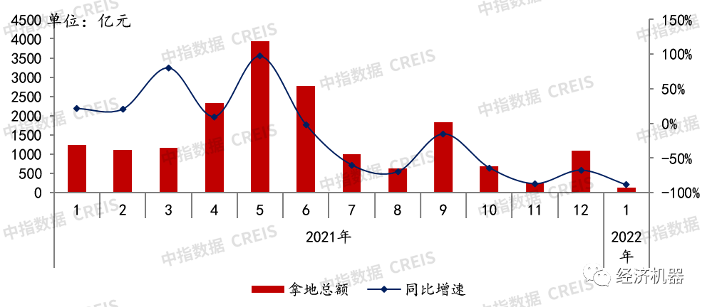 1月土拍市場表現十分低迷。據中指研究院數據,1月,TOP100企業拿地總額837億元,拿地規模同比下降62.6%。同時,據克而瑞地產研究中心的報告顯示,深圳、蘇州、寧波和無錫三輪集中土拍開啟,土拍熱度均低于二輪,1月份溢價率再創歷史新低為23%,平均流拍率升至21%,大部分流拍地塊集中在三四線城市,并以涉宅用地居多。1月份百強房企銷售額同比去年1月份下降幅度超過40%。