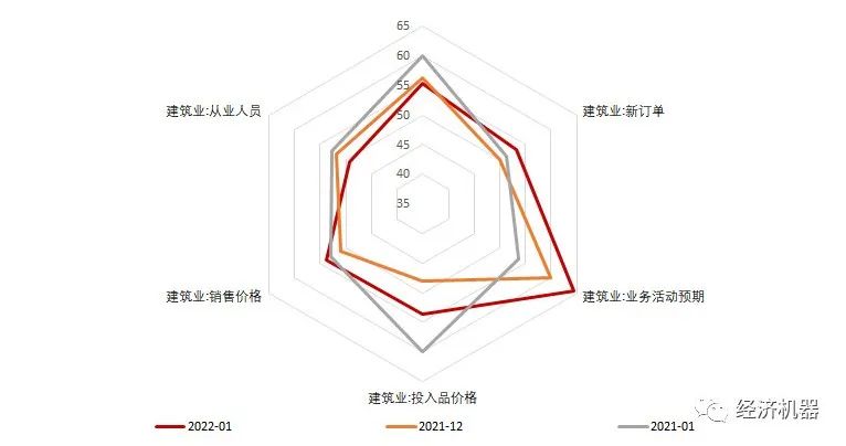 建筑業訂單與預期均有所回升。1月,建筑業PMI新訂單指數為53.3%,較上月提升3.3個百分點。建筑業PMI業務活動預期指數為64.4%,較上月提升4.5個百分點,連續第三個月提升,表明需求與預期均向好。
