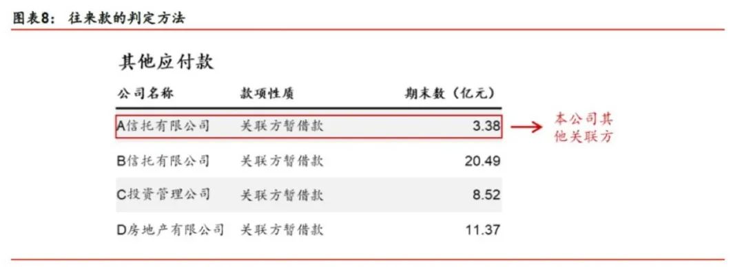如果往來款項規模較大、存在對母公司大量的資金占用以及與金融類企業的關聯資金往來,代表著表外負債存在的可能性較大