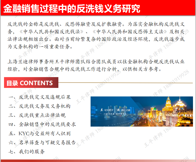 上海蘭迪律師事務所王平律師團隊結合團隊成員以往金融機構合規反洗錢從業經驗,對金融銷售合規中的反洗錢工作進行分析,以供相關方參考。