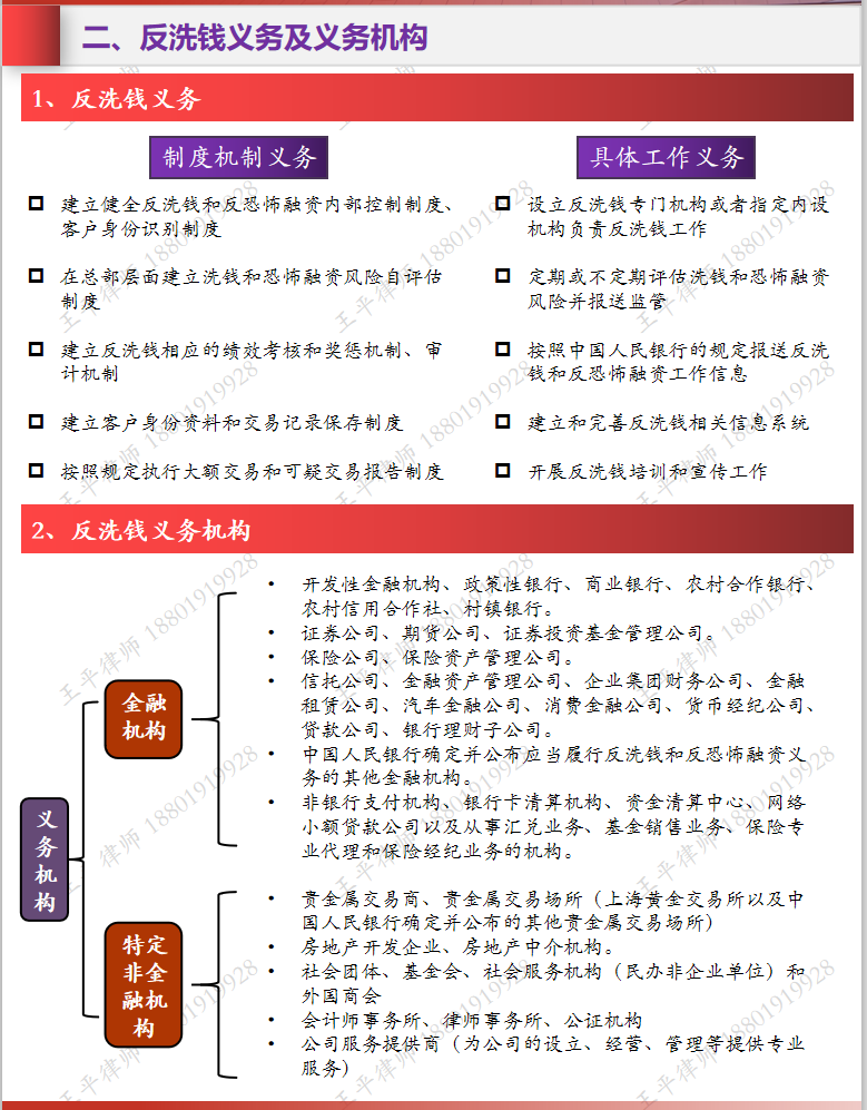 反洗錢的全稱是反洗錢、反恐怖融資及反擴散融資。為落實金融機構反洗錢義務,《中華人民共和國反洗錢法》、《中華人民共和國反恐怖主義法》及相關法律法規相繼出臺。面對當前紛繁復雜的國際政治及經濟環境,反洗錢逐步成為義務機構的一項重要任務。