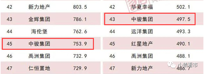 據(jù)克而瑞排名顯示,中駿集團以753.9億操盤金額排名第45位;以497.5萬平方米操盤面積位居第43位。