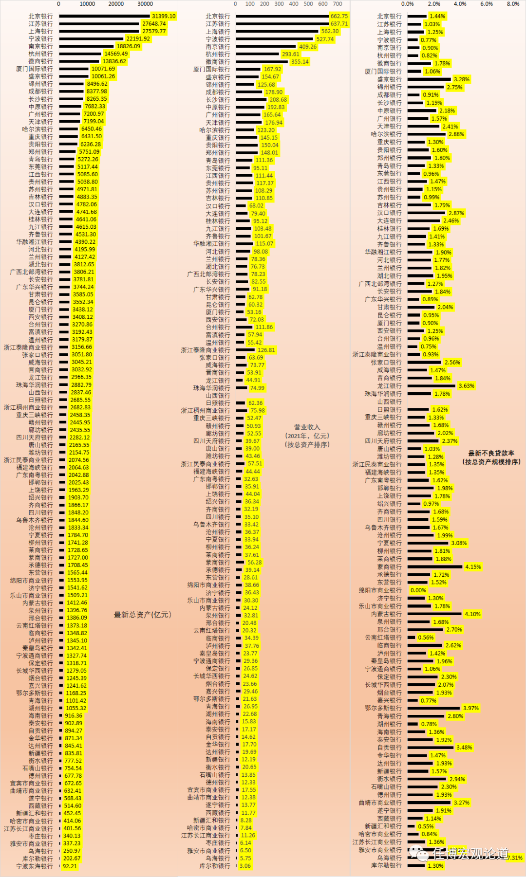 在國有大行與股份行之后(參見強(qiáng)者恒強(qiáng)的國有六大行與12家股份行手冊(2022年版)),本文聚焦城商行這一群體(上市銀行的分析可參見全部59家上市銀行經(jīng)營指標(biāo)排名大全(2021年底))。