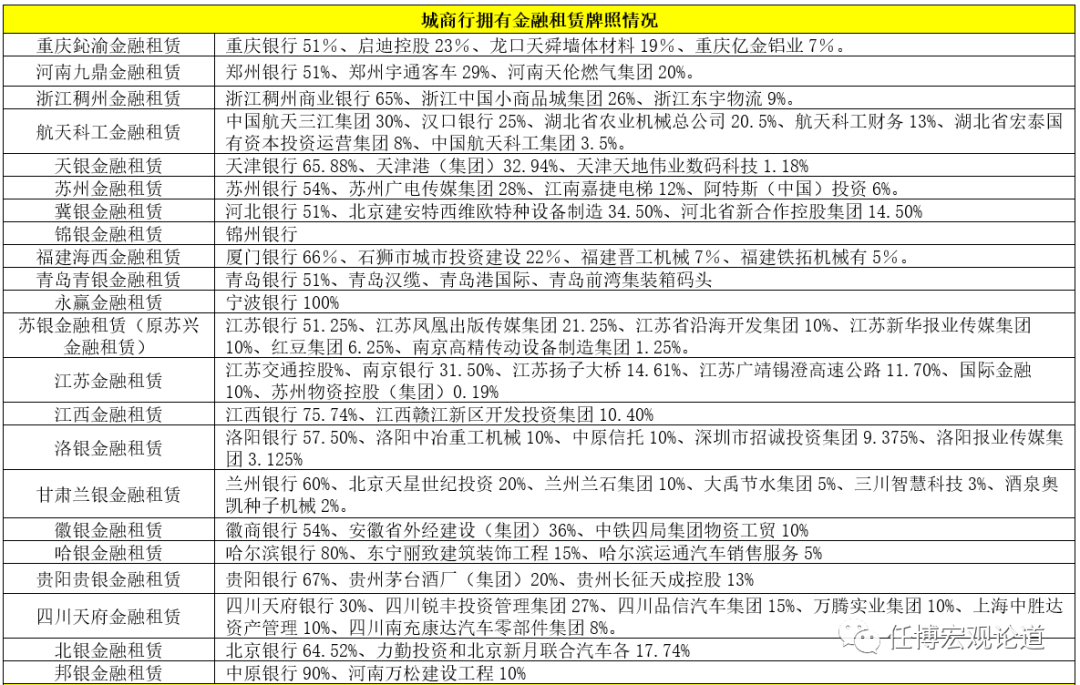 目前共有22家城商行擁有金融租賃牌照,分別為北京銀行、江蘇銀行、寧波銀行、南京銀行、徽商銀行、錦州銀行、哈爾濱銀行、中原銀行、貴陽銀行、天津銀行、蘇州銀行、青島銀行、河北銀行、鄭州銀行、重慶銀行、浙江稠州商業(yè)銀行、漢口銀行、廈門銀行、江西銀行、洛陽銀行、蘭州銀行、天府銀行。