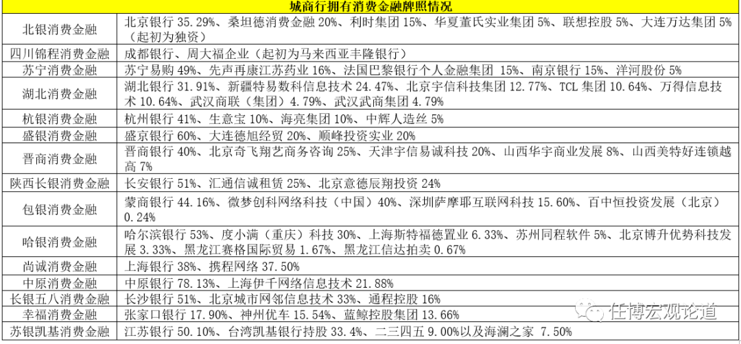 鑒于其它牌照獲取的難度,多數(shù)銀行基于政策的鼓勵將金融租賃和消費(fèi)金融視為首要選擇。根據(jù)統(tǒng)計已設(shè)立金融租賃公司的城商行有22家,設(shè)立消費(fèi)金融公司的城商行有11家。當(dāng)然部分銀行也擁有其它并不常見的牌照,如徽商銀行參股奇瑞徽銀汽車金融、西安銀行參股設(shè)立比亞迪汽車金融等。
