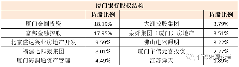 1、廈門銀行:第一大股東由廈門市財政局變更為廈門金圓投資集團(tuán)