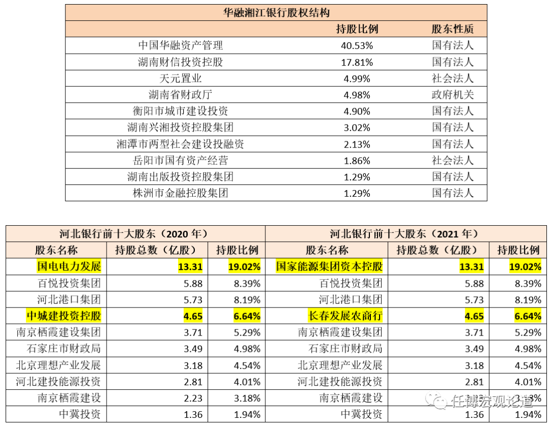 (1)2021年8月6日,原河北銀行第一大股東國電電力發(fā)展發(fā)布《關(guān)于公司與國家能源集團(tuán)進(jìn)行資產(chǎn)置換暨關(guān)聯(lián)交易的公告》稱擬將其持有的河北銀行全部股權(quán)及另一家子公司股權(quán),與其控股股東國家能源投資集團(tuán)旗下11家子公司進(jìn)行置換。置換完成后,國家能源投資集團(tuán)躋身河北銀行第一大股東,國家能源投資集團(tuán)持有國電電力發(fā)展的股權(quán)比例為46%。