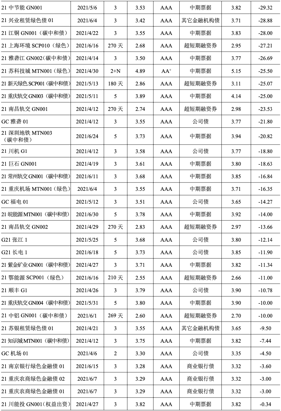 2021年6月9日,中國人民銀行發布《銀行業金融機構綠色金融評價方案》,自2021年7月1日起施行。方案進一步拓寬了商業銀行考核業務的覆蓋范圍,將考核內容由綠色貸款業務升級為綠色貸款和綠色債券業務,并為綠色股權投資、綠色租賃、綠色信托、綠色理財等預留了空間。其評價結果將納入央行金融機構評級等政策和審慎管理工具。方案的實施有助于持續引導銀行業金融機構投資綠色債券,推動綠色債券激勵機制建設,為綠色債券市場發展提供新動力,同時也將進一步增加相關機構對綠色債券的投資需求,改善我國綠色債券投資積極性不高等問題,尤其是在綠色信貸上相對落后的銀行,未來對綠色債券的投資有望持續加強,促進我國綠色債券市場在下半年進一步擴容。(摘自21世紀經濟報道,2021年6月24日)