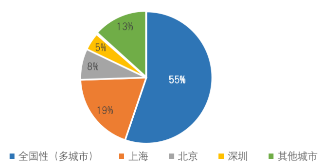 全國性(多城市)成交金額占比最多達55%,完成交易的優質資產多布局于一線及新一線城市較為核心區位。