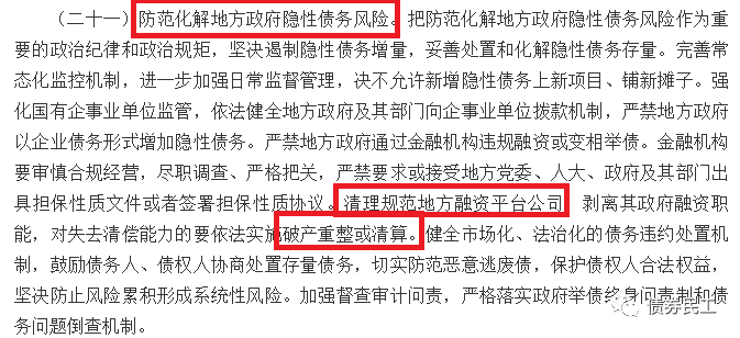 首先需要說(shuō)明的是,《意見》中關(guān)于地方政府融資平臺(tái)的意見,是在“防范化解地方政府隱性債務(wù)風(fēng)險(xiǎn)”項(xiàng)下的,重點(diǎn)關(guān)注的是隱性債務(wù)。